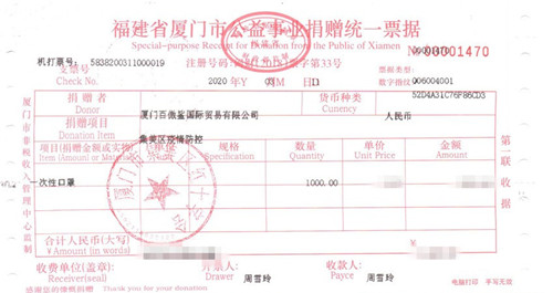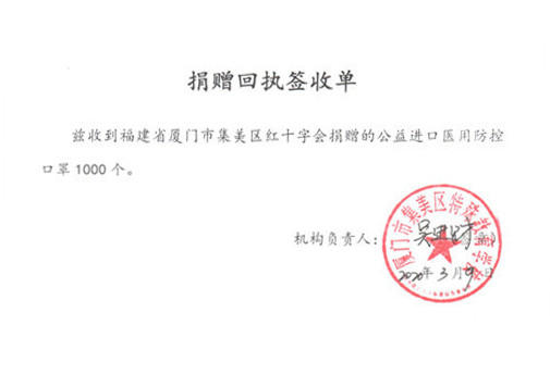 2020年伊始,新型冠状病毒感染的肺炎疫情时刻牵动着人心,各种防护物资也十分短缺。在得知特殊教育学院防护物资紧缺的情况后,百傲鲨公司紧急向日本调配进口口罩,于3月10日通过厦门市集美区红十字会,向厦门市集美区特殊教育学校无偿捐赠1000个日本医用防护口罩,略尽绵薄之力。