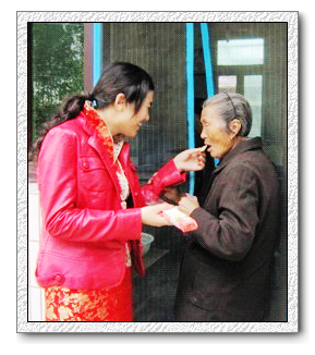 而温馨的微笑,透露出女孩善良、孝顺的心。这是和谐又温馨的一刻。